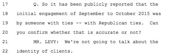 Simpson, through his lawyer, didn't want to talk about who originally hired Fusion GPS to research Trump