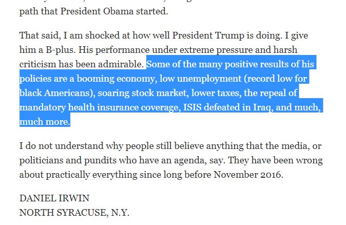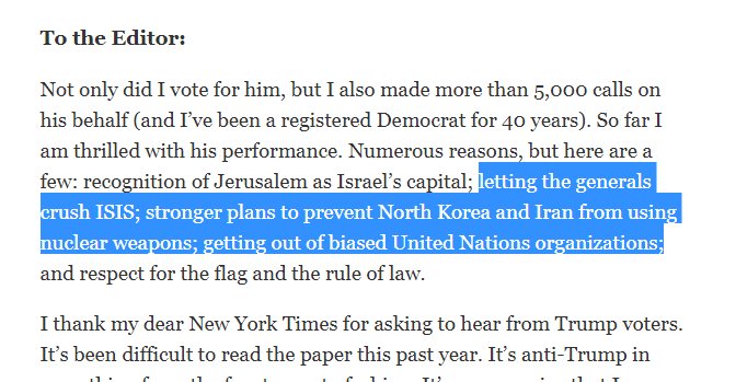 Giving Trump credit for things which have in no way occurred... like deploying some new ISIS strategy other than the one already implemented by Obama... or doing anything other than send mean tweets toward North Korea.