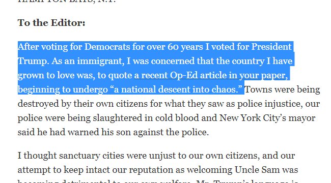 The letters from people who plead a case which actually calls into serious question the wisdom of the one man/one vote thing.