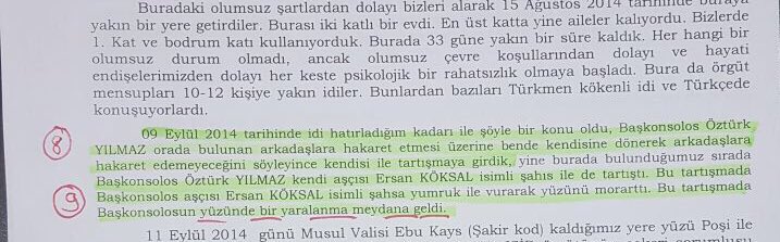 Alıkonulma günlerini anlatan güvenlik amiri S.C., "Başkonsolos Öztürk Yılmaz, bir gün arkadaşlara hakaret etti. Tartıştık. Yılmaz kendi aşçısı Ersan Köksal'a yumruk attı. Kavga sırasında kendi de yüzünden yaralandı" dedi. Yılmaz yurda döndüğünde yüzündeki çizikler dikkat çekmişti