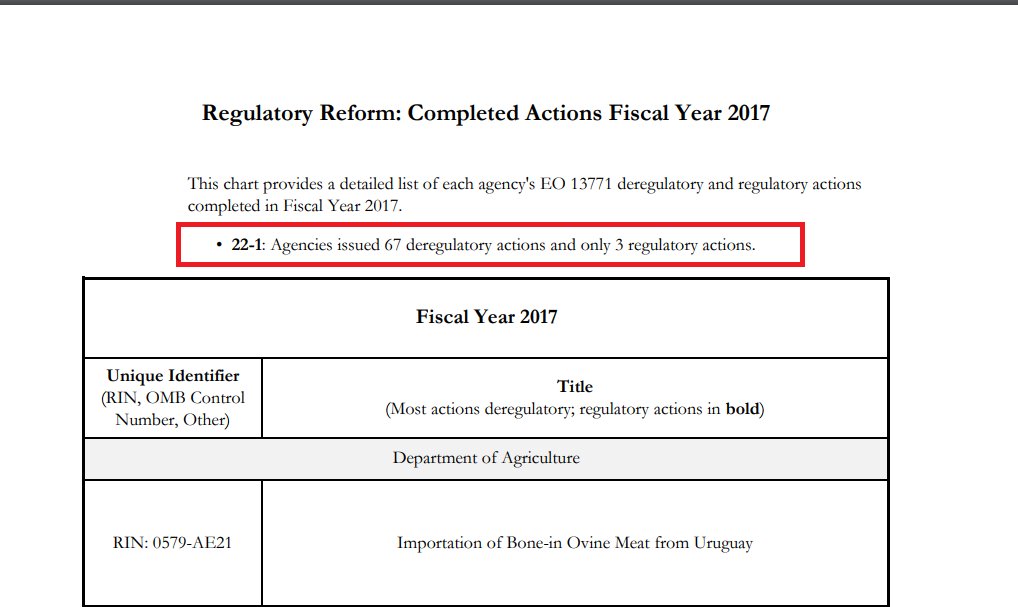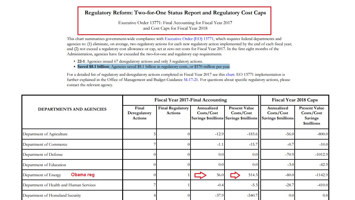 ONLY 3 regulations were enacted in 2017, one of which was an Obama reg enacted in December 2016. Trump Admin 2017 scorecard is 67-2 or 38.5 to 1. OMB report detailing all 2017 reg actions>>reginfo.gov/public/pdf/eo1…