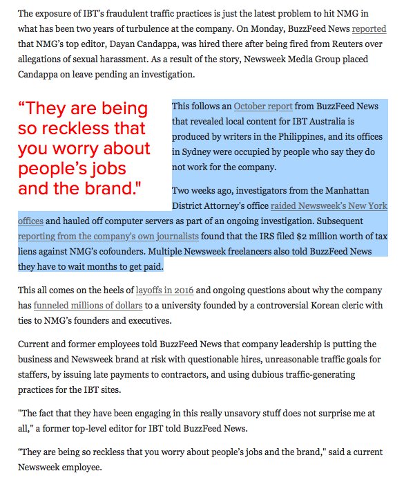 2010 deal: Sydney Harmon & Diller's IAC bought Newsweek from @washingtonpost for $1 and assumed $47M of debt.