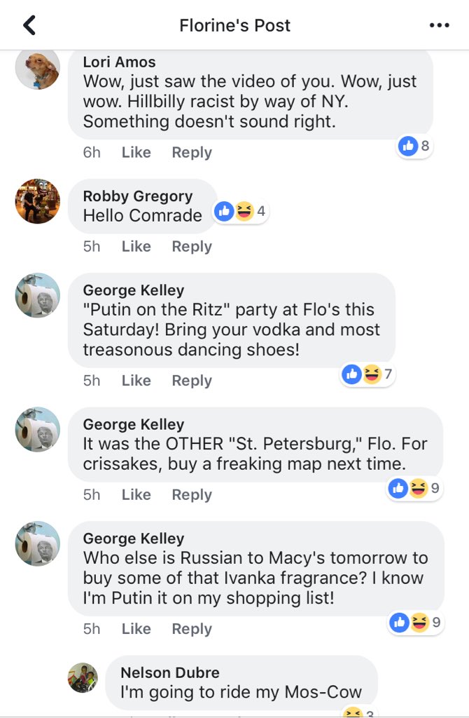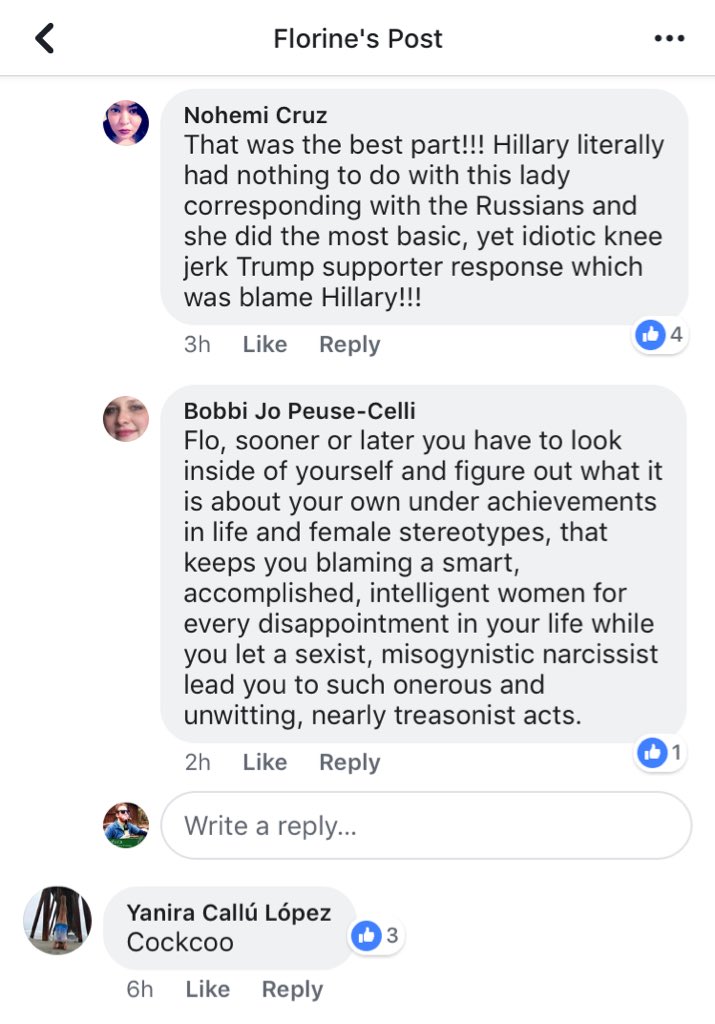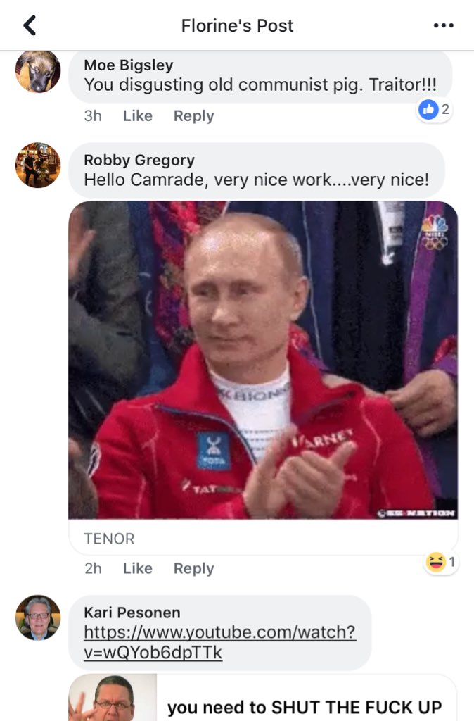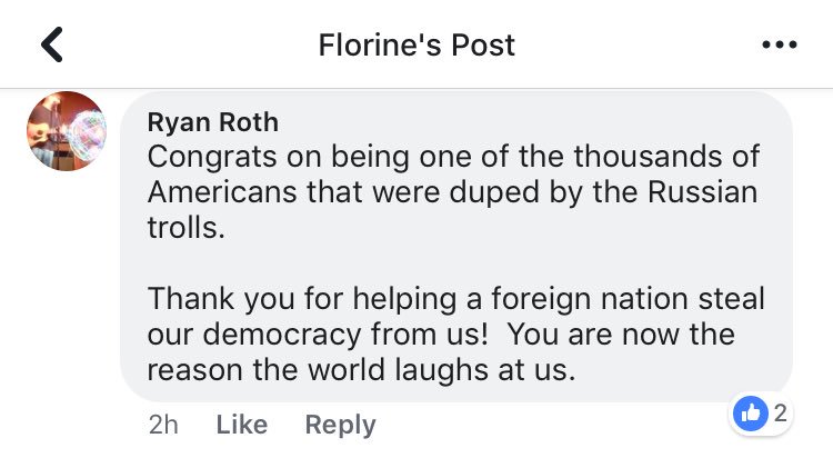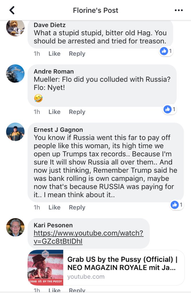 CNN published her name — it’s so unique it’s the only one that pops up on FB. I’m not doxxing her & I won’t show her profile page, but let’s take a look at the comment section of her recent FB posts — first up a baby vid. If Russia wanted division, they got it. Nice job, @CNN. 2/