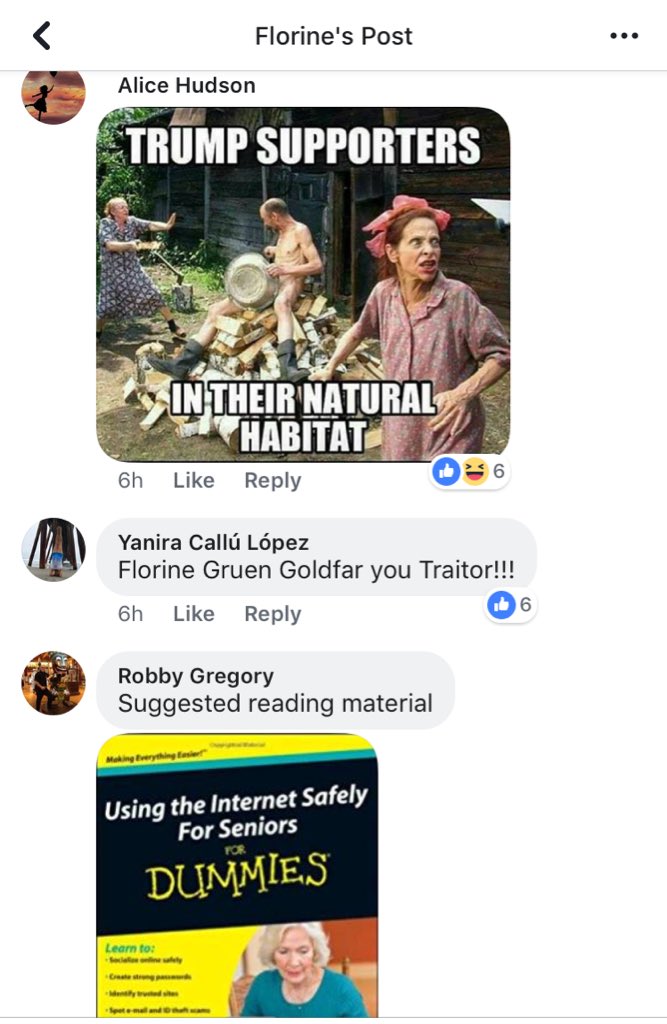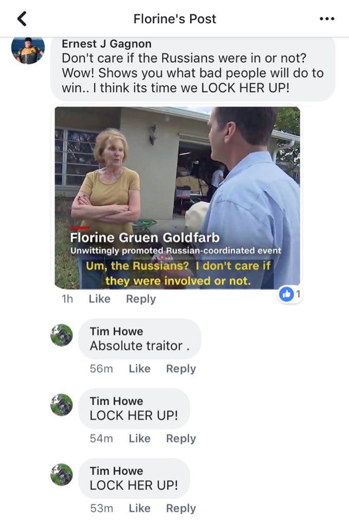 Thanks @CNN! Check out the stream of vile “Putin!” “Russia!” “Traitor!” talk in her comments — and memes of her! — all because some Russian trolls might’ve tricked her into talking to them. Yes, people need to be less gullible. But here’s The Resistance harassing an old woman. 3/