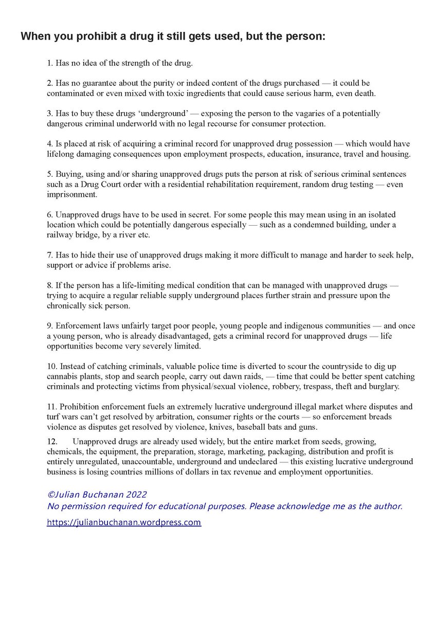 3/ It's widely accepted among drug policy experts that prohibition has caused more damage than the drugs the government is supposedly protecting us all from. Reform is long overdue. However, we need to think critically and carefully before drifting towards alternative models.
