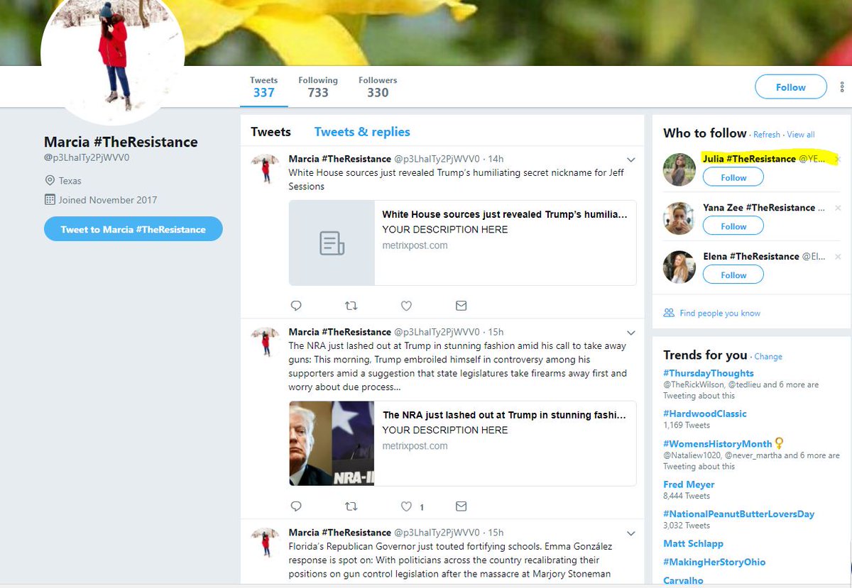 I would like to briefly discuss the group of accounts that have invaded resistance twitter dubbed “resist bots.” Over 700 have been identified by twitter users and we hope twitter will soon shut them down, but of course more will appear, so here’s how to spot them. THREAD