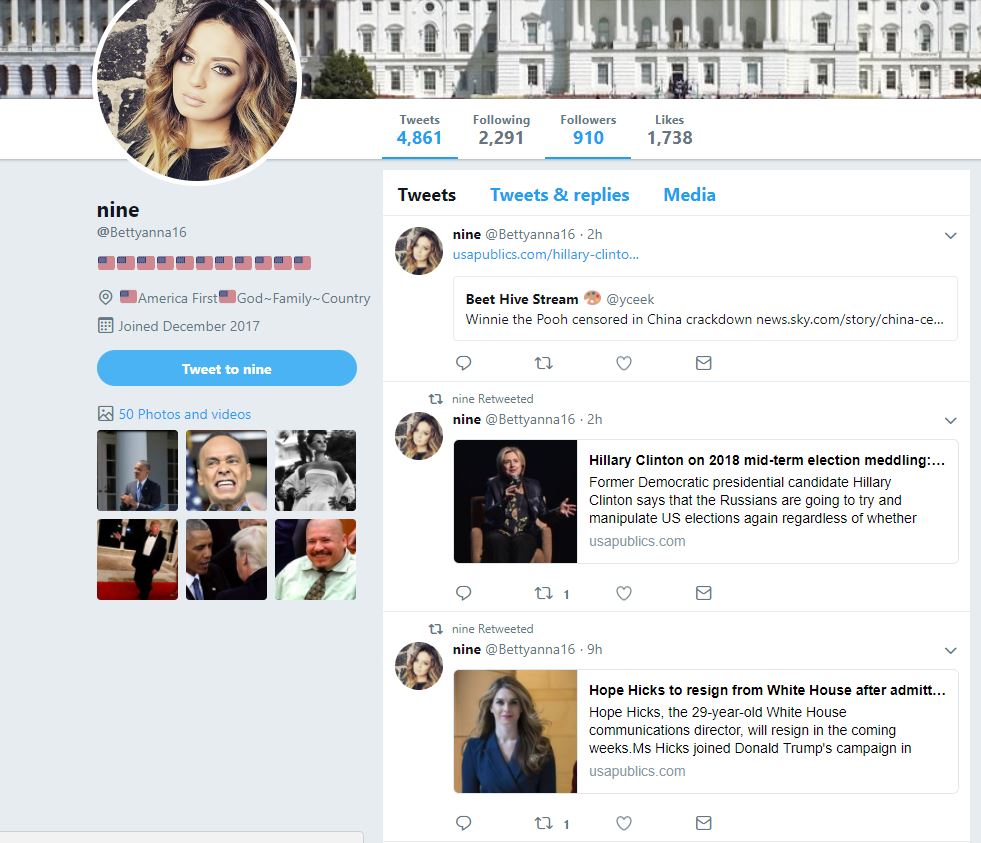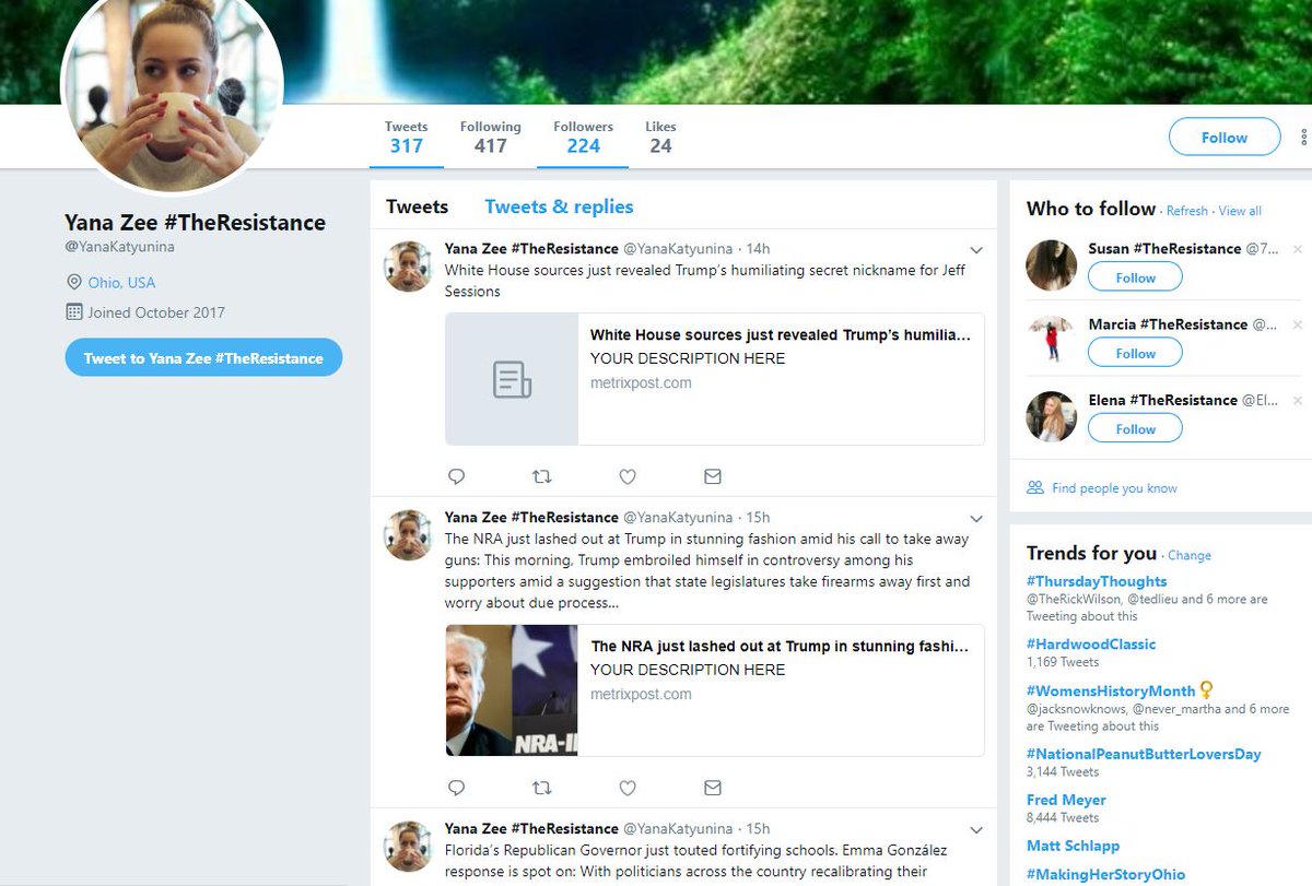 So the bot begins by building trust and ultimately starts pushing shady news while hiding within resistors' timelines and looking like a trustworthy quote tweet on an interesting topic.