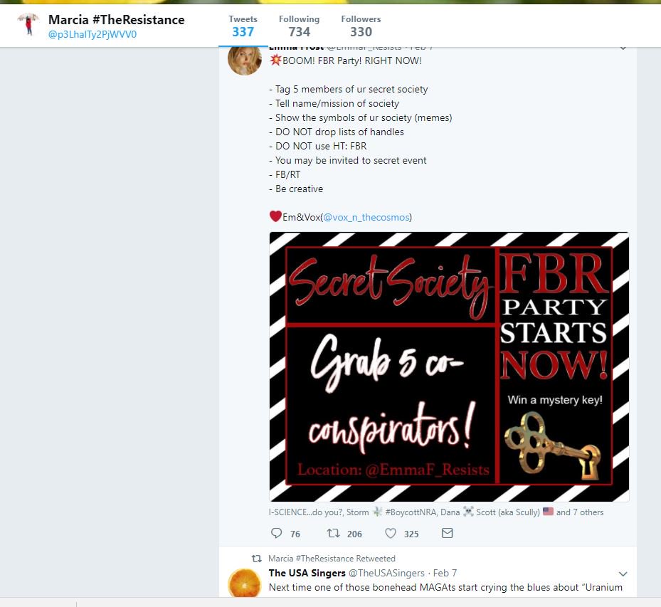 This time period was programmed to to look authentic and to grow followers and it finished up retweeting smaller resistance accounts and an FBR party...then it moved to phase two.