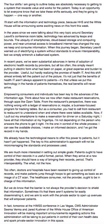 Anyone who’s been waiting for a clear declaration of this Administrations beliefs and intentions re #ValueBasedCare - here it is