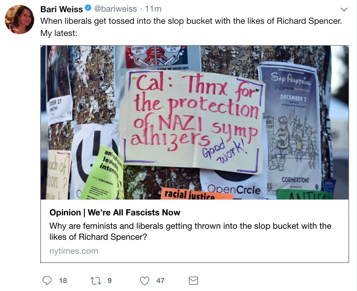 Plus Weiss' piece is just bad on the merits -- among other things she cites what appears to be a parody "Antifa" Twitter account with 7,000 followers, not once but twice