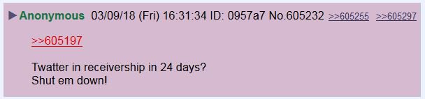 Twatter in receivership in 24 days?