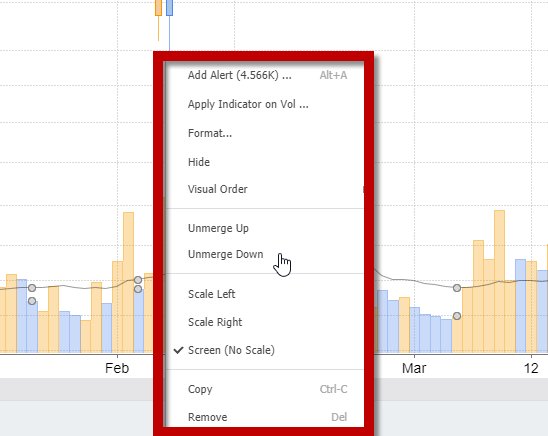 @tradingview charts, by default, merge the volume indicator with the price chart.