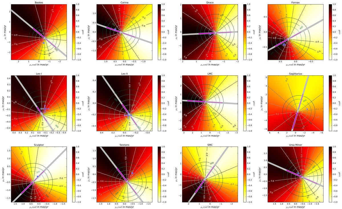- Leo I & II are more uncertain in Gaia, no surprise given their distance. For Leo II the Gaia uncertainties allow a radial orbit, so any orbital pole direction is allowed. For now I'd trust the HST data of the Leos more, and there Leo II aligns well.