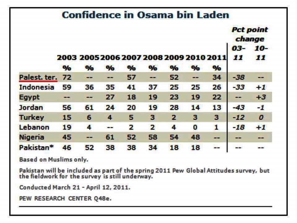In 2011, still 1 out of every 3 Palestinians you met was an admirer of Osama bin Laden.