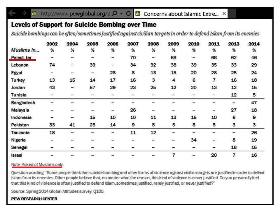 In 2014, only every second Palestinian you met supported suicide bombings targeting civilians 'to defend Islam'