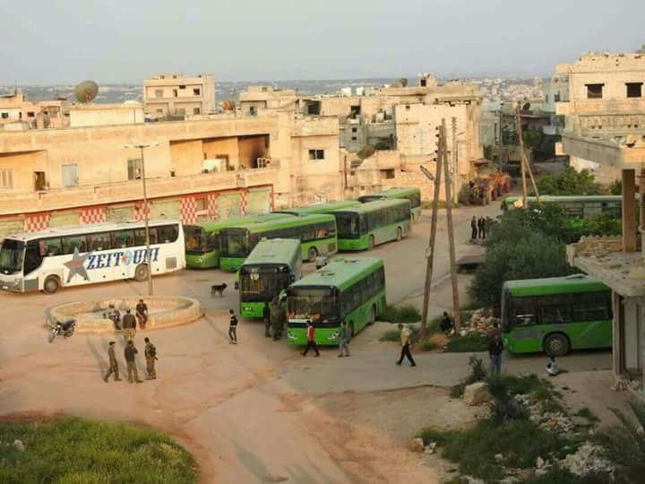 13. 20 Buses entered #Kafraa & #Fua in order to evacuate 1500 people to government held #Aleppo. #Yarmouk evacuation also in effect