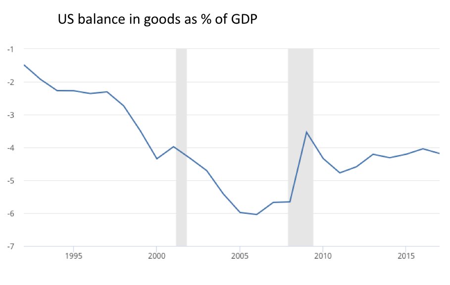 US trade balance in goods, as % of GDP, is about where it was in 2000 2/
