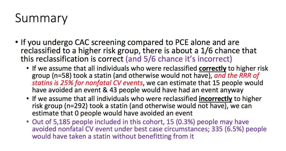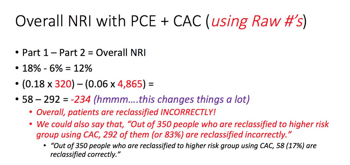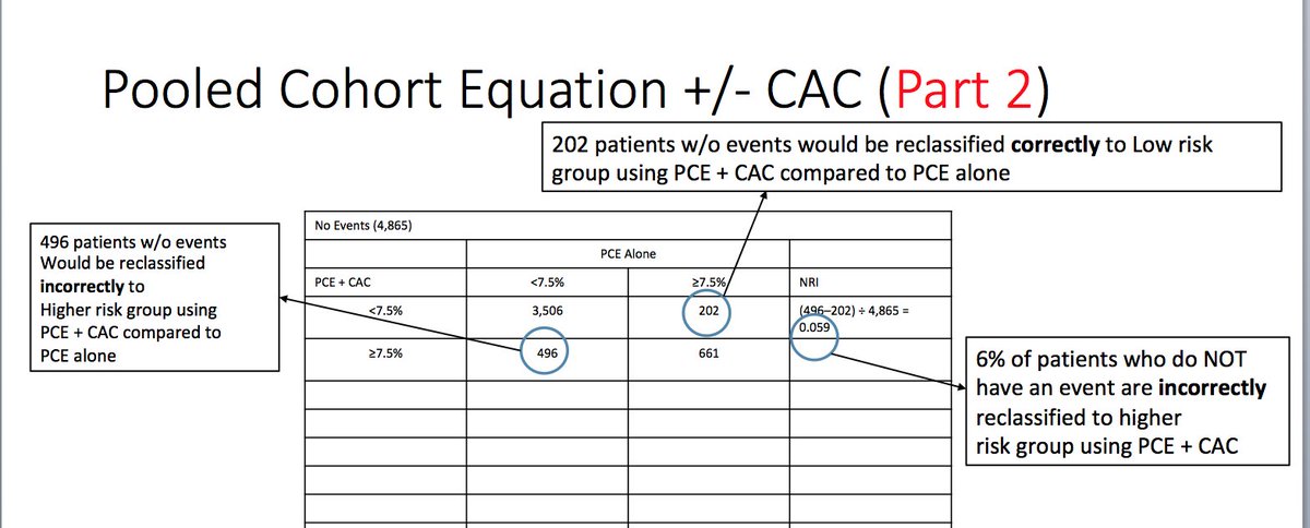 This paper concluded the net reclassification improvement w CAC was +12% over the pooled cohort equation (PCE), which is just risk factors, nothing fancy. Sounds good right?