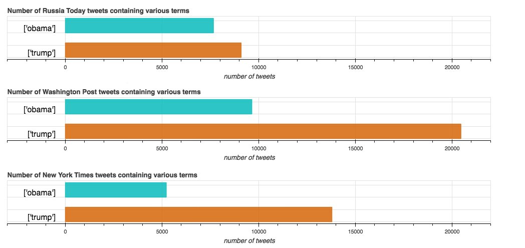 Frequency of "Obama" and "Trump" in protest/rally tweets from @RT_com/@RT_America, @washingtonpost, and @nytimes.