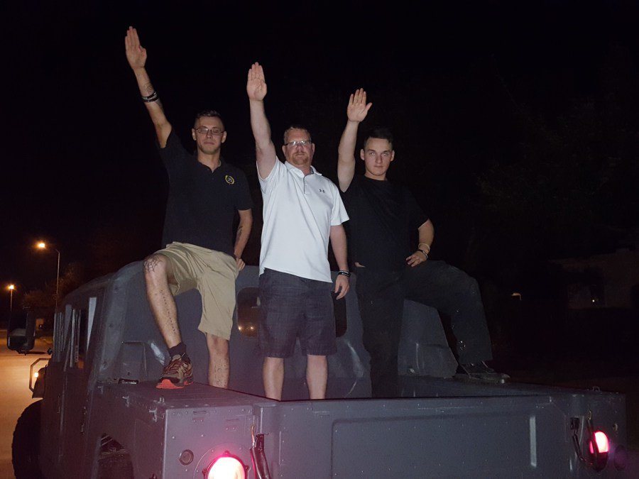 @ShaunKing Nick Brown, 43, also known as NDO Nick, Braxton Bragg, nickarmy75, and movnforwrd1. He may be in the Dallas/Fort Worth area. He’s originally from Wrightsville, NC. He’s an army vet and, like Eric, is an NDO. Here’s a picture of him (middle) sieg heiling with other PF members.