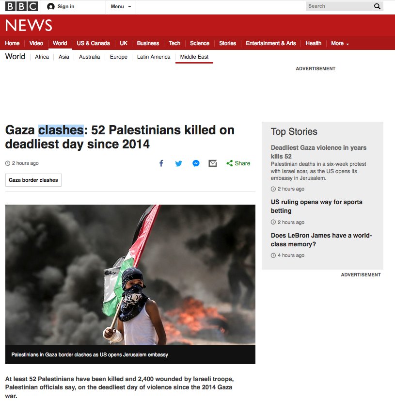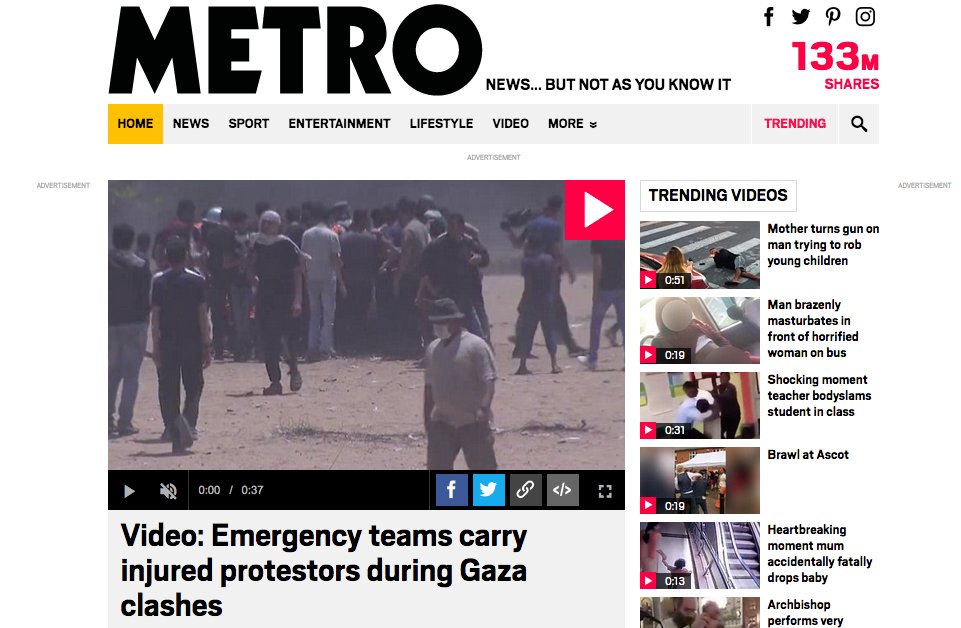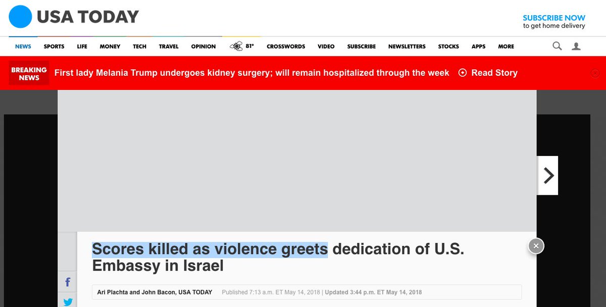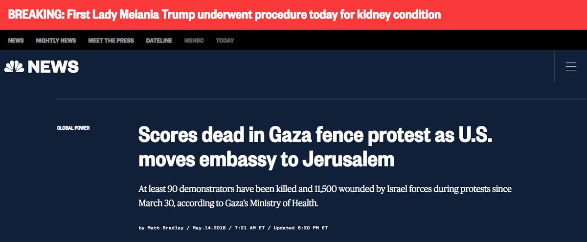 (Note how Melania's kidney condition gets much more attention than the massacre of Palestinian civilians)