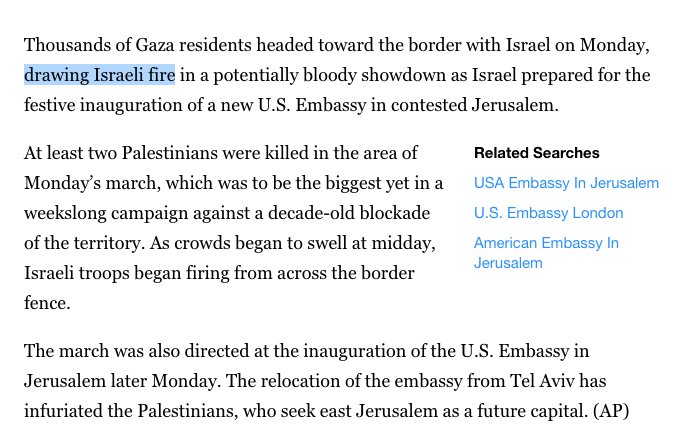 The body of the article fails to note these are unarmed Gazan protesters, and says they are "drawing Israeli fire"