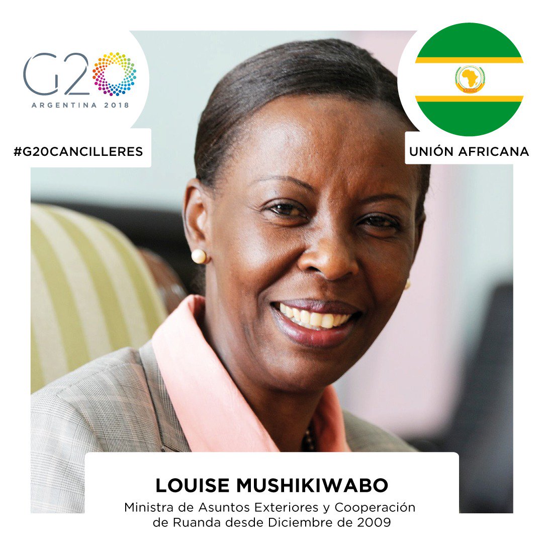 Participantes de la Reunión #G20Cancilleres: Ministra de Asuntos Exteriores y Cooperación de Ruanda🇷🇼 Louise Mushikiwabo en representación de la @_AfricanUnion