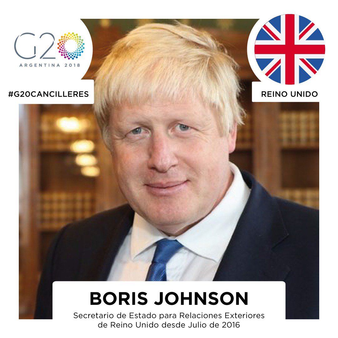 Participantes de la Reunión #G20Cancilleres: Secretario de Estado para las Relaciones Exteriores del Reino Unido🇬🇧 @BorisJohnson. Es autor, periodista, político y miembro del Partido Conservador.