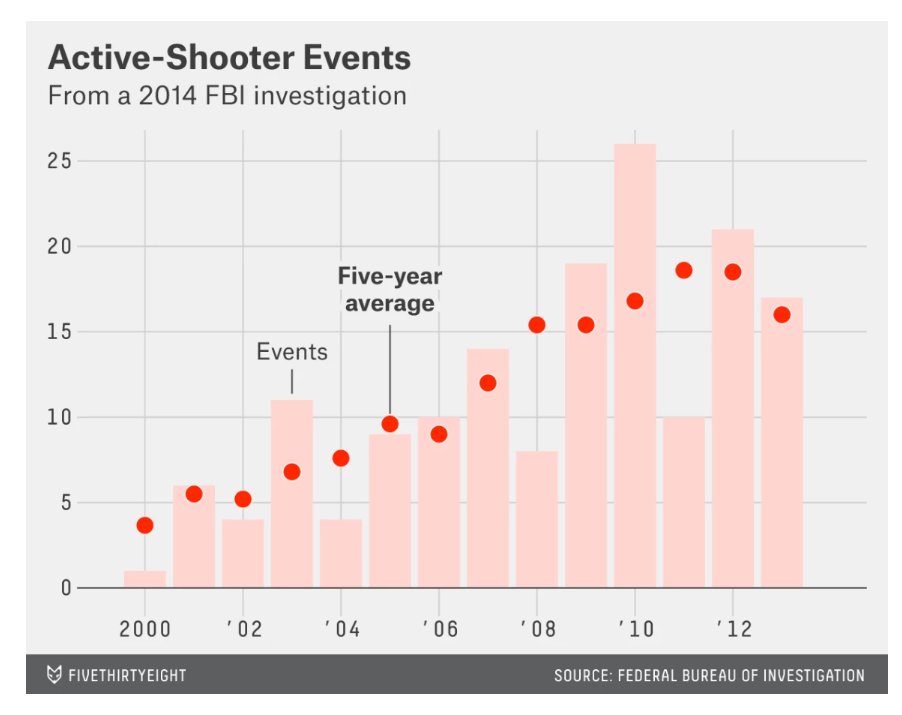 Seeing lots of claims that the increase in mass/school shootings is a myth. The problem is a profusion of definitions, which yield very different trends. The salient trait is not where shootings happen or how many deaths. It's the active-shooter profile. And those are increasing.
