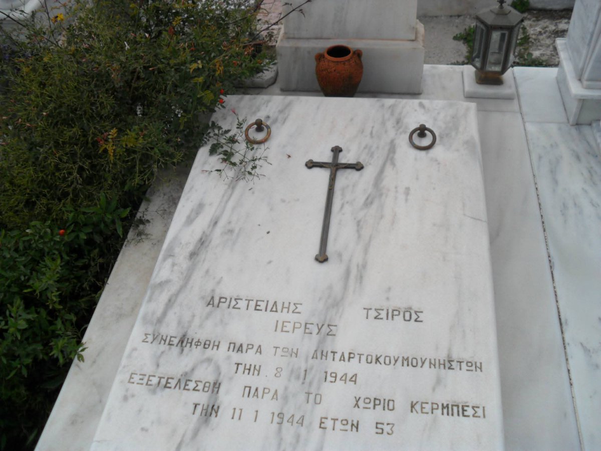 Ο παπα-Τσίρος είναι ένα από 1.275 (τουλάχιστον) θύματα της Κόκκινης Τρομοκρατίας στην Αργολιδοκορινθία το 1943-44 που θάφτηκαν στη σιωπή και την εγκατάλειψη για 80 χρόνια, προς χάρην μιας κακώς εννοουμένης πολιτικής λήθης γιά εθνική σύμπνοια, που είχε καταστροφικά αποτελέσματα. Η απόκρυψη των γεγονότων επέτρεψε στην Αριστερή μυθοπλασία να αντιστρέψει την Ιστορία και να ανακηρύξει τους φυσικούς θύτες αθώων πατριωτών Ελλήνων σε ήρωες της Αντίστασης, και το πολιτικό και κομματικό σύστημα που γέννησε και κατηύθυνε τα εγκλήματα ότι έχει «ηθικό πλεονέκτημα!!».