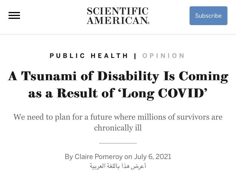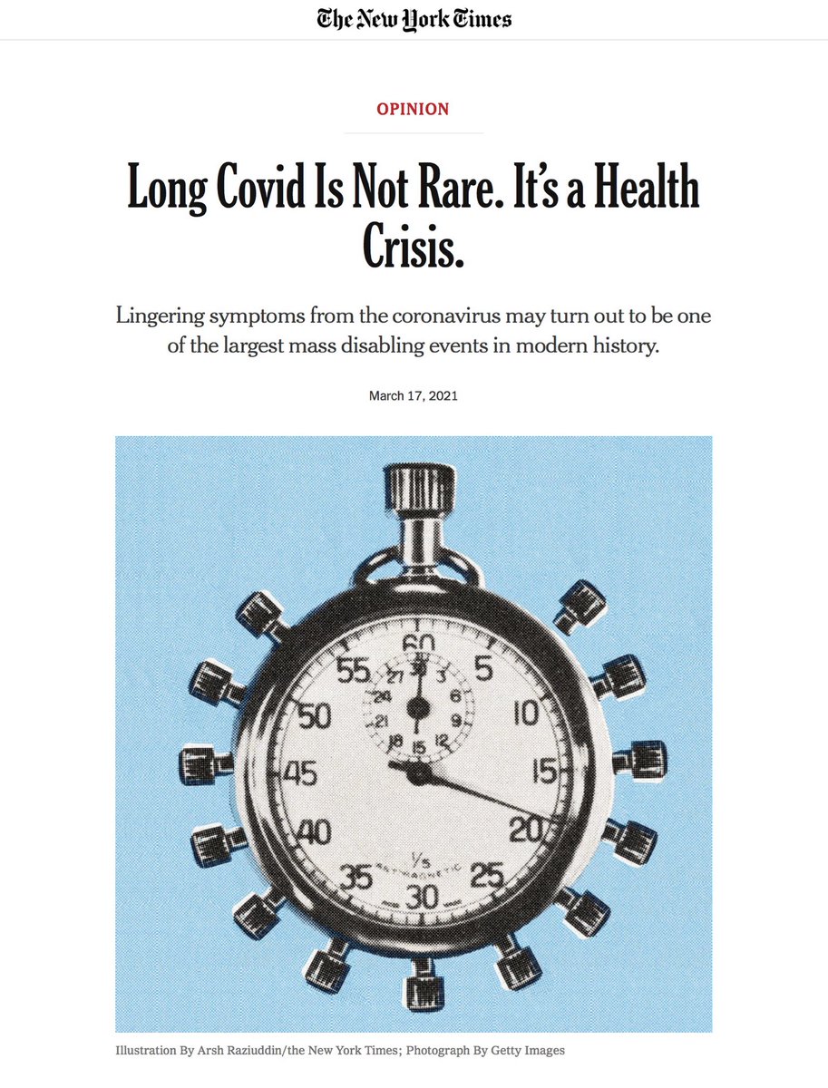 “Long Covid Is Not Rare. It’s a Health Crisis. Lingering symptoms may turn out to be one of the largest mass disabling events in modern history.”