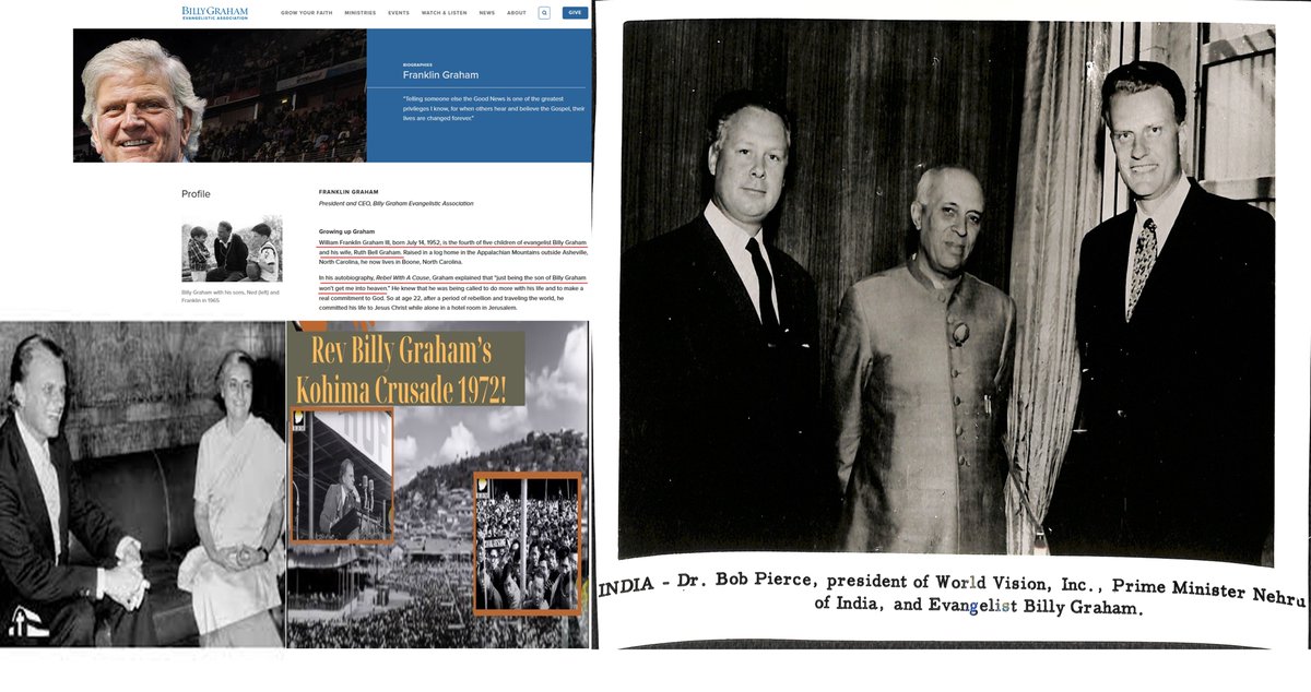 1. Franklin Graham is the President and CEO, Billy Graham Evangelistic Association and 4th son of Billy Graham ( Founder of Billy Graham Evangelistic Association, Christian missionary organization based out of the US) and who along with World Vision founder Bob Peirce ran limitless crusades in India during The Nehru and Indira Gandhi regimes with impunity to convert million of Hindus in South India and North East India into Christianity.