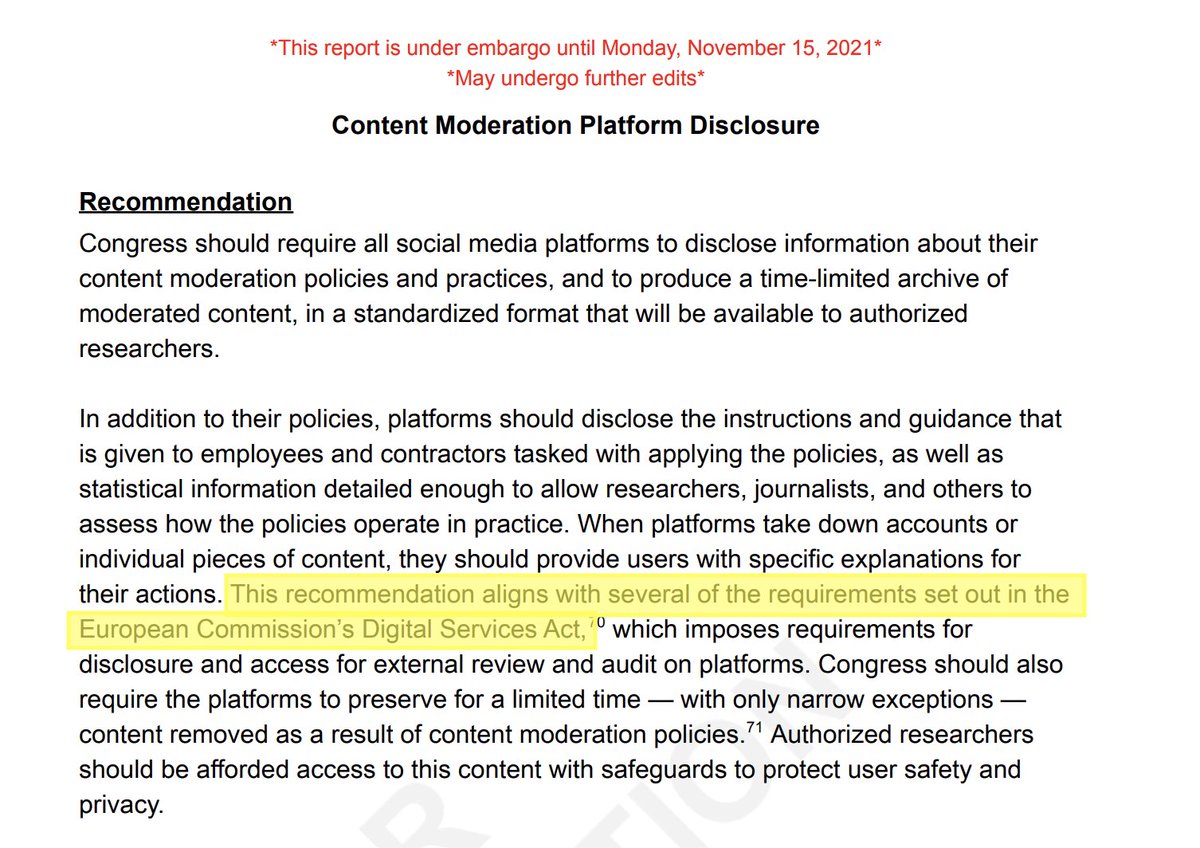 "THIS RECOMMENDATION ALIGNS WITH... THE EUROPEAN COMMISSION'S DIGITAL SERVICES ACT."