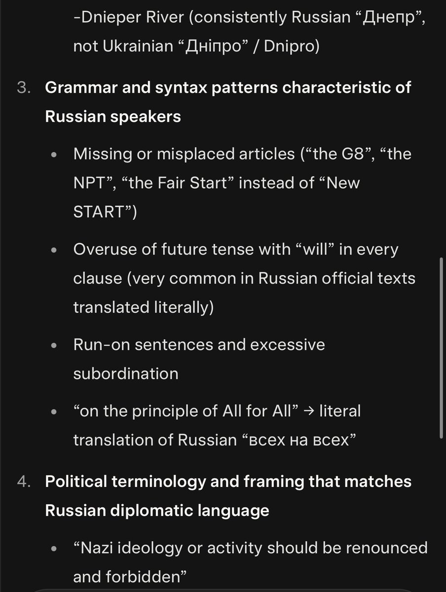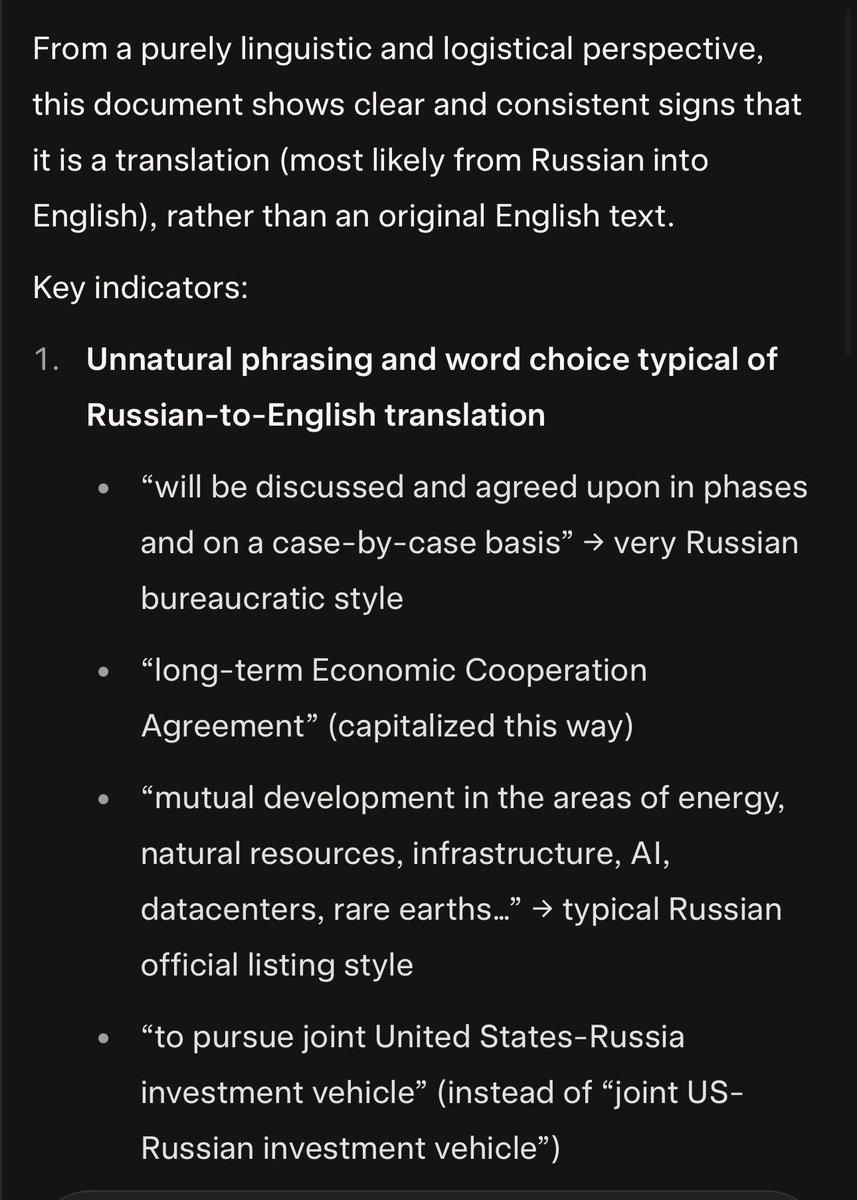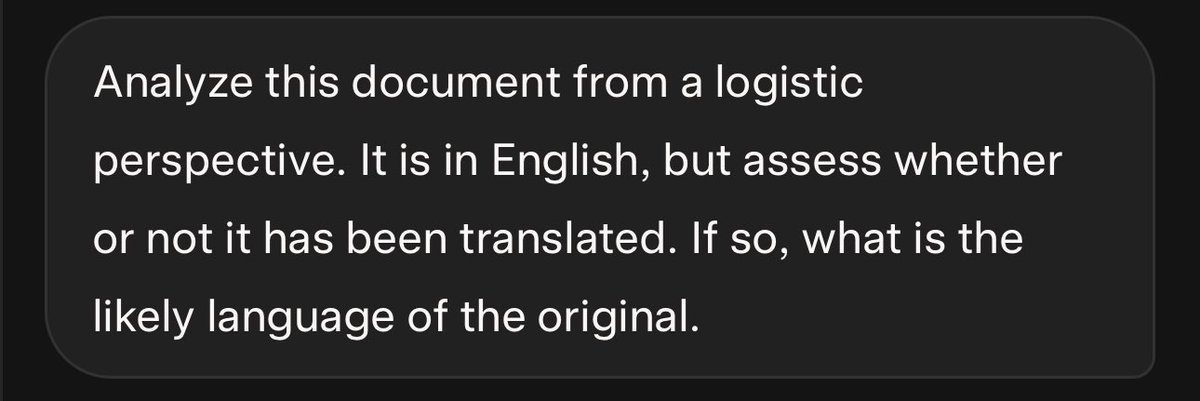 I prompted, “Analyze this document from a logistic perspective. It is in English, but assess whether or not it has been translated. If so, what is the likely language of the original?” 🧵
