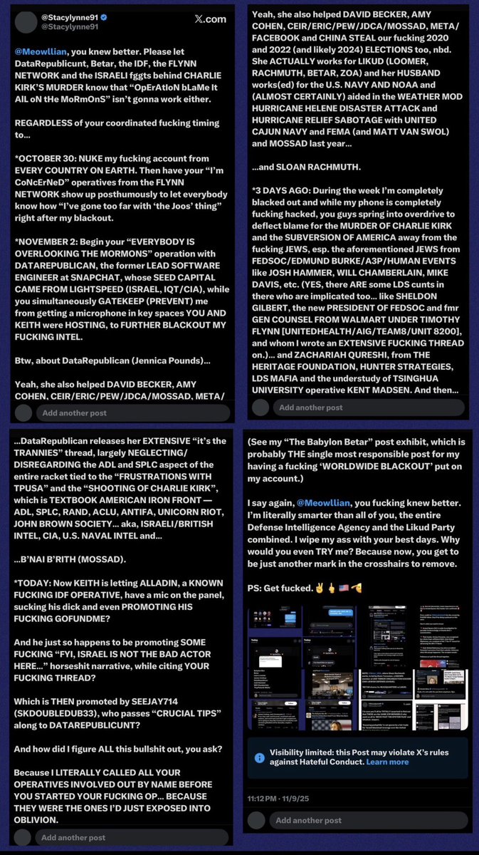 The same campaign, Hussein said, is “targeting Candace Owens,” the national podcasting treasure who alleged over the weekend that the French government and an Israeli are trying to assassinate her.