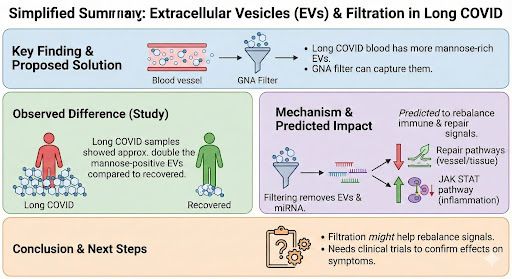They can influence inflammation and the immune system. In Long COVID, EVs may help keep symptoms going.
