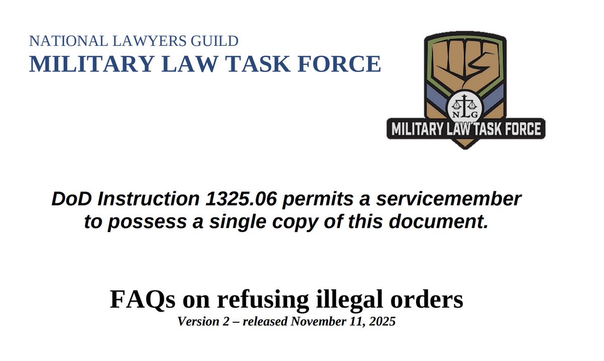 National Lawyers Guild issued a document about refusing illegal orders on 11 November. And now they have partnered with Win Without War to advertise seditious-adjacent behavior on billboards. And Win Without War has multiple Congressional liaisons on their "About" page.