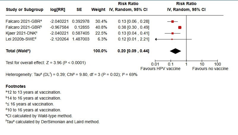 Notably, one of the major studies (Palmer 2024, which was found to be seriously flawed) has been excluded from the meta-analysis because it did not show a cancer benefit in the under 16 age group.
