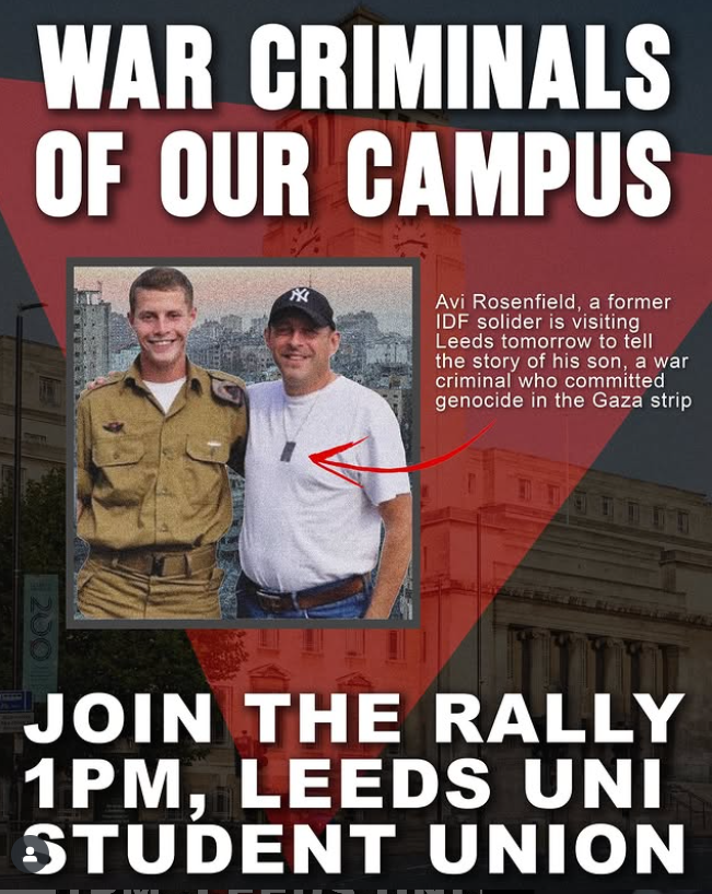 Pro Hamas activists @UniversityLeeds are attacking. The father of an Israeli soldier killed by Hamas who is brave enough to speak to students. They think they're attacking him under the cloak of anonymity, they're not. Let's see who LeedsStudents4Palestine might be...🧵
