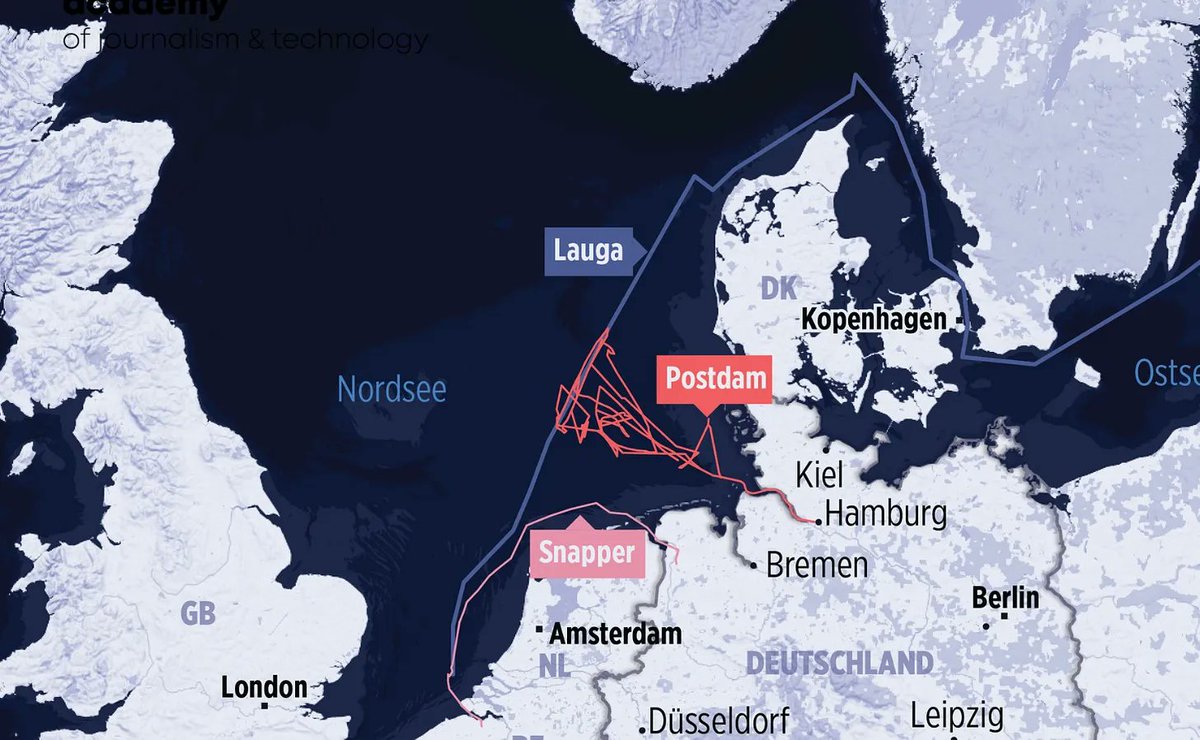 Seven German journalism students tracked Russian-crewed freighters lurking off the Dutch and German coast and connected them to drone swarms over military bases. Using public tracking tools, their own drones and even driving 2500 kilometers while following a ship, they produced🧵