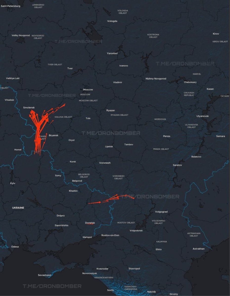 Details: Three drones approached Tver Oblast (~170 km northwest of Moscow), with one veering toward a residential high-rise in the city center after interception attempts.