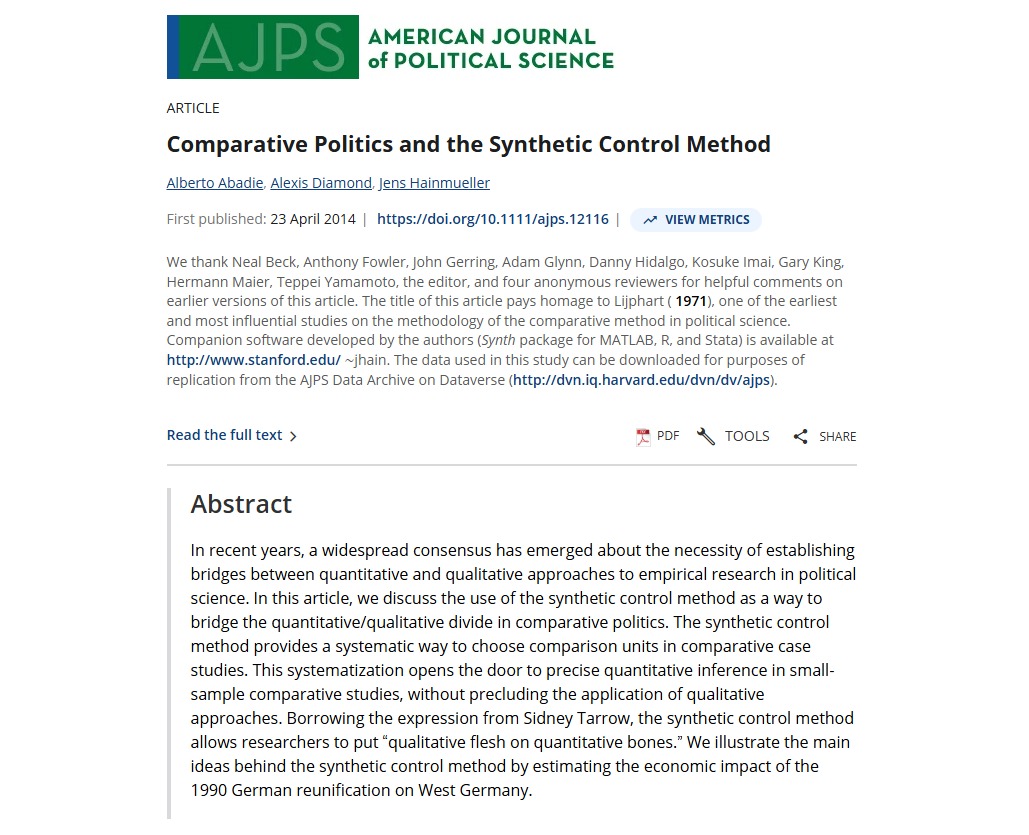 Como parte de un equipo de investigación multidisciplinario de varios académicos e investigadores, decidimos usar el método de control sintético (Abadie, Diamond & Hainmueller, 2015), que incorpora análisis cuantitativo al análisis tradicional de las Ciencias Sociales y la Historia Económica mediante modelos de regresión y comparación entre casos. Todavía es un working paper que publicaremos pronto.