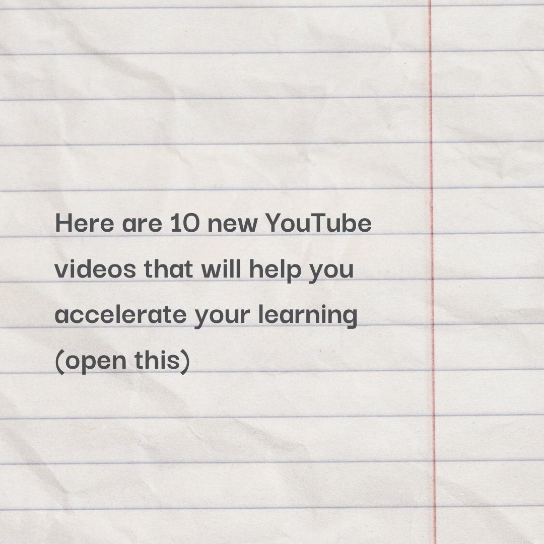 Here are 10 new YouTube videos that will help you accelerate your learning (open this) 👇