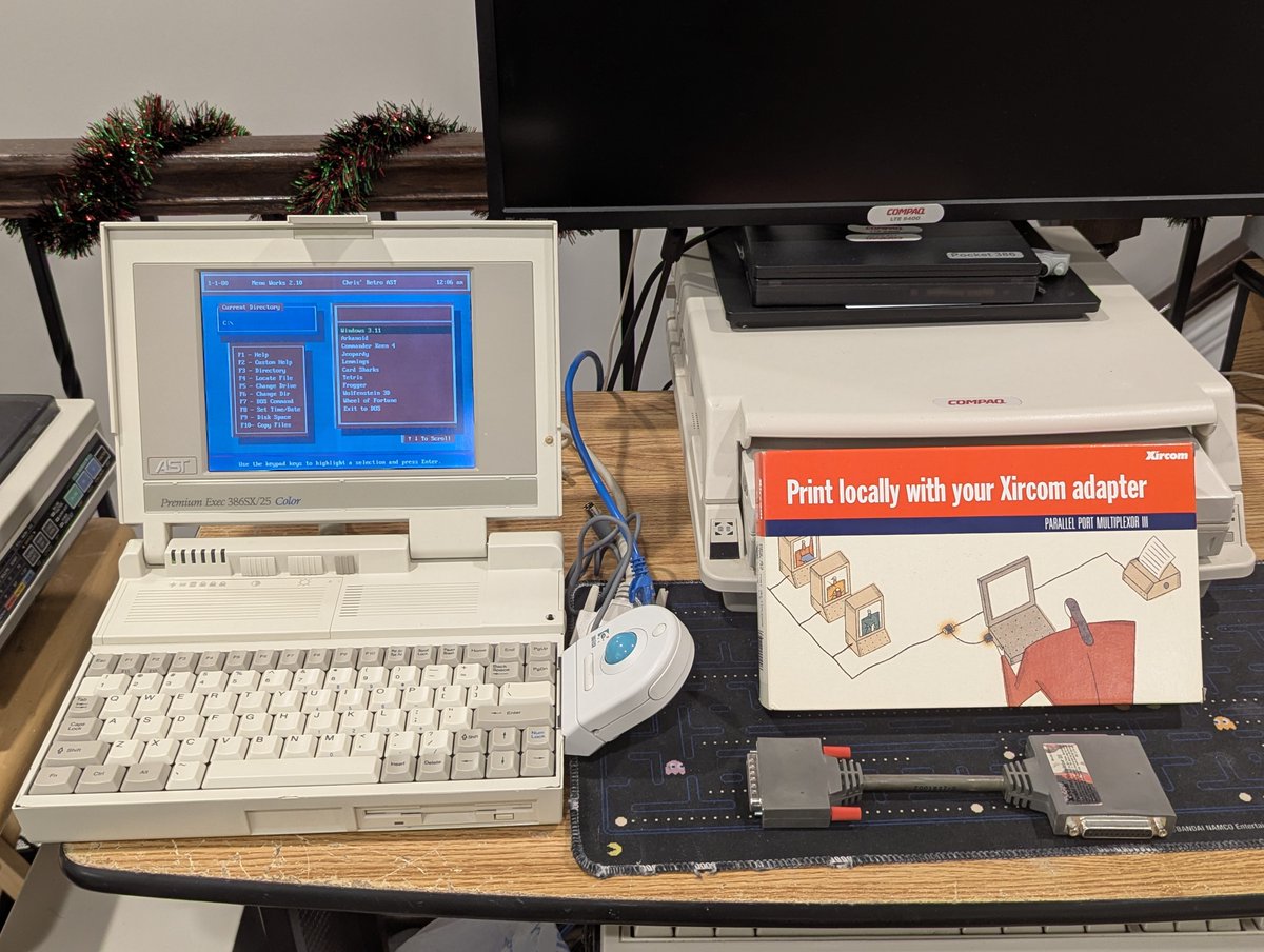As you might have seen from the intro pic, I'm going to use my AST Premium Exec 386SX/25 to test this out. This machine doesn't have any PCMCIA slots, so I do use a Xircom Pocket Ethernet III to get it online!