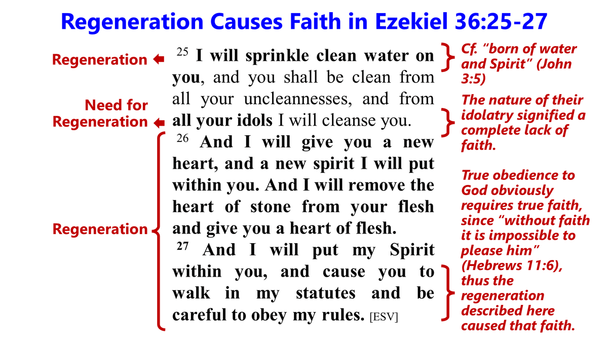 🧵 𝟏/𝟕: Scripture is clear, in both the Old and New Testaments, that regeneration causes and therefore logically (if not chronologically) precedes the faith in Christ that brings justification before God.