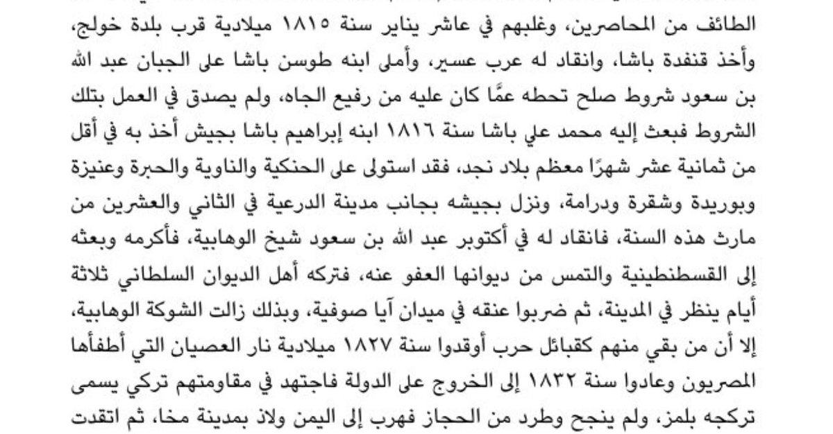 بعد سقوط الدرعيه ومقتل الامام زالت شوكة الوهابيين باستثناء #قبيلة_حرب التي اوقدت نار الثورة وطردت القائد تركجه بلمز الى اليمن