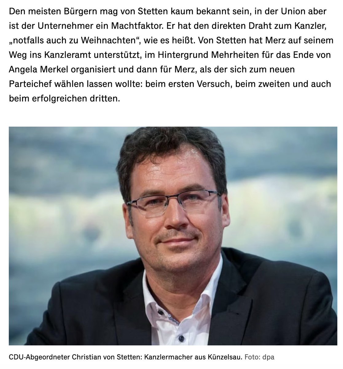 An vorderster Front haben wir von Stetten. Er zieht alle Fäden und gehört zum Geldadel in Deutschland. Von Stetten ist ein ganz großer Verfechter, dass Erbeschaftssteuern insbesondere auf große Vermögen komplett abgeschafft werden. Wenn es nach ihm geht, geht es wieder zurück zum Feudalismus.