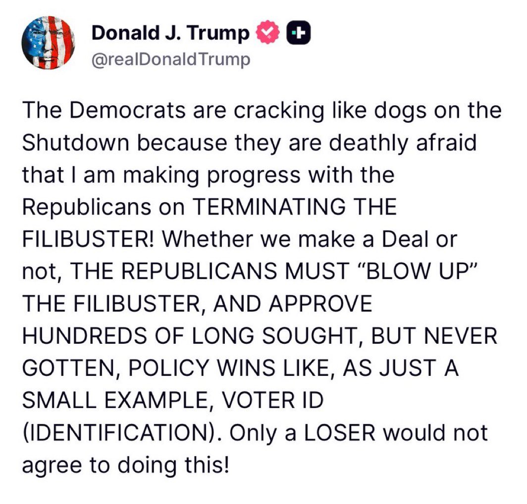 2️⃣ Killing the legislative filibuster is a one-way door Once it’s gone, any future Senate majority can pass laws with 50 votes.