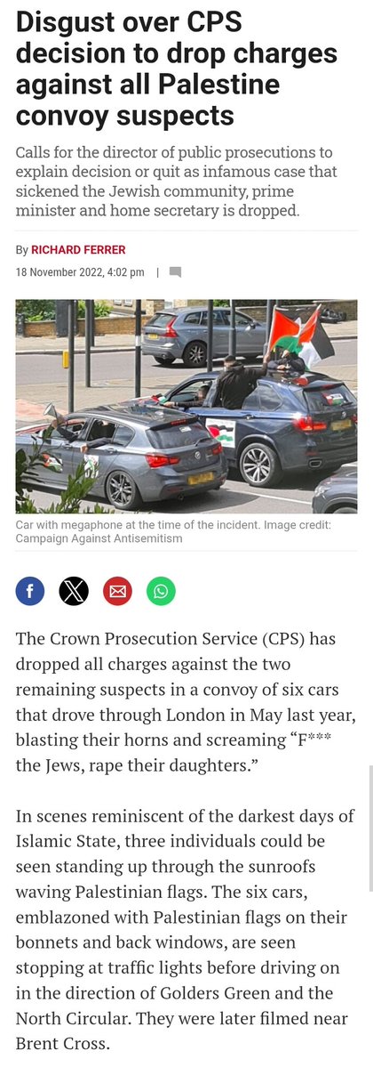 You can drive round Jewish parts of London for *hours* screaming "F*ck the Jews, rape their daughters" 'because of Palestine' and not be apprehended by police or prosecuted when identified.