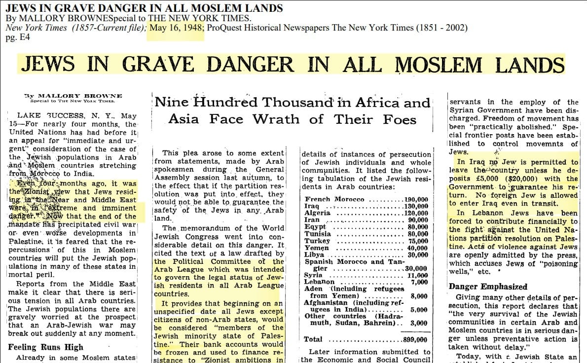 900,000 Jews were ethnically cleansed from 10 Arab countries within a 30 yr period